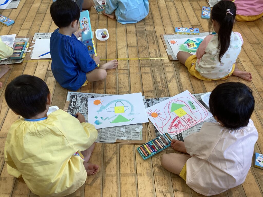 7月17日 雪組 絵画教室🎨 2024 7/17 ブログ 2024年7月17日 雪組になり初めての絵画教室🎨 「何するのかな?」「絵の具使うのかな?」と楽しみにしていました 想像力豊かな子どもたち💗 △・◯・⬜︎の形でさまざまな作品が完成しました‼︎ 階段に掲示しますので是非一緒に見て、 お話を楽しんでくださいね♪ ブログ アルバムに写真をアップしました☆ 7月お誕生会メニュー 関連記事 🌸3月誕生日会🌸 2026年3月14日 3月 HAREの日メニュー 2026年3月4日 2月の誕生会🎂 2026年2月28日 2/14 成長展 2026年2月28日 2/3 節分🌸豆まき 2026年2月28日 🎂2月誕生日会🎂 2026年2月20日 2月 HAREの日 2026年2月7日 1月の誕生会🎂 2026年2月3日